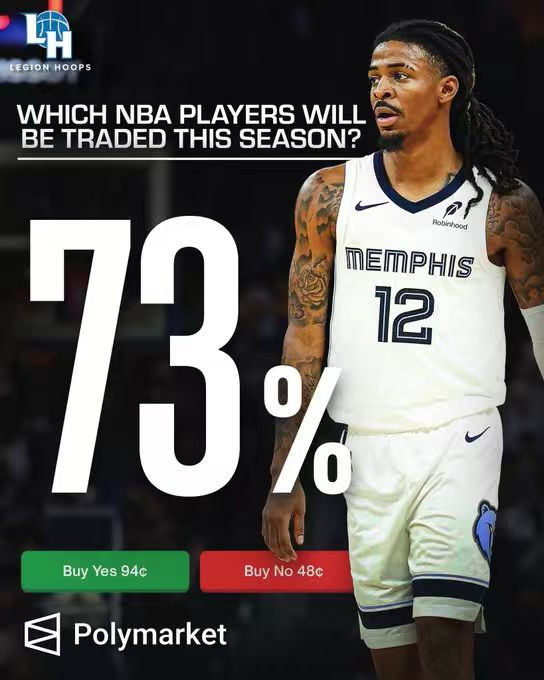 据PolymarketSports的数据,贾-莫兰特在2月5日之前被交游的概率已飙升至73%。